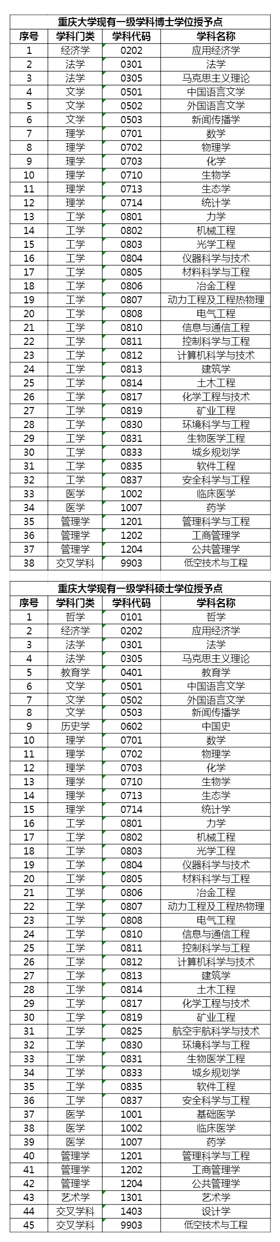 重庆大学现有一级学科博士、硕士学位授予点(2025年10月更新)